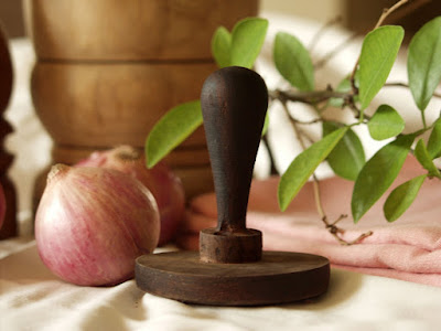Here's another...beautiful piece ... from the traditional Indian kitchen ... I am not sure where I first saw it ... but I found myself so attracted to it ... another wooden tool . As traditional as it is and as age old the design looks... many Indian kitchens still find place for this. A handle to grip and a rounded bottom to help you press down on the paranthas,roti'sand chappati's (traditional Indian bread) ... it ages well ... being made of wood and the butter used to make the roti's and paranthas definitely keeps the wood moist and greased.